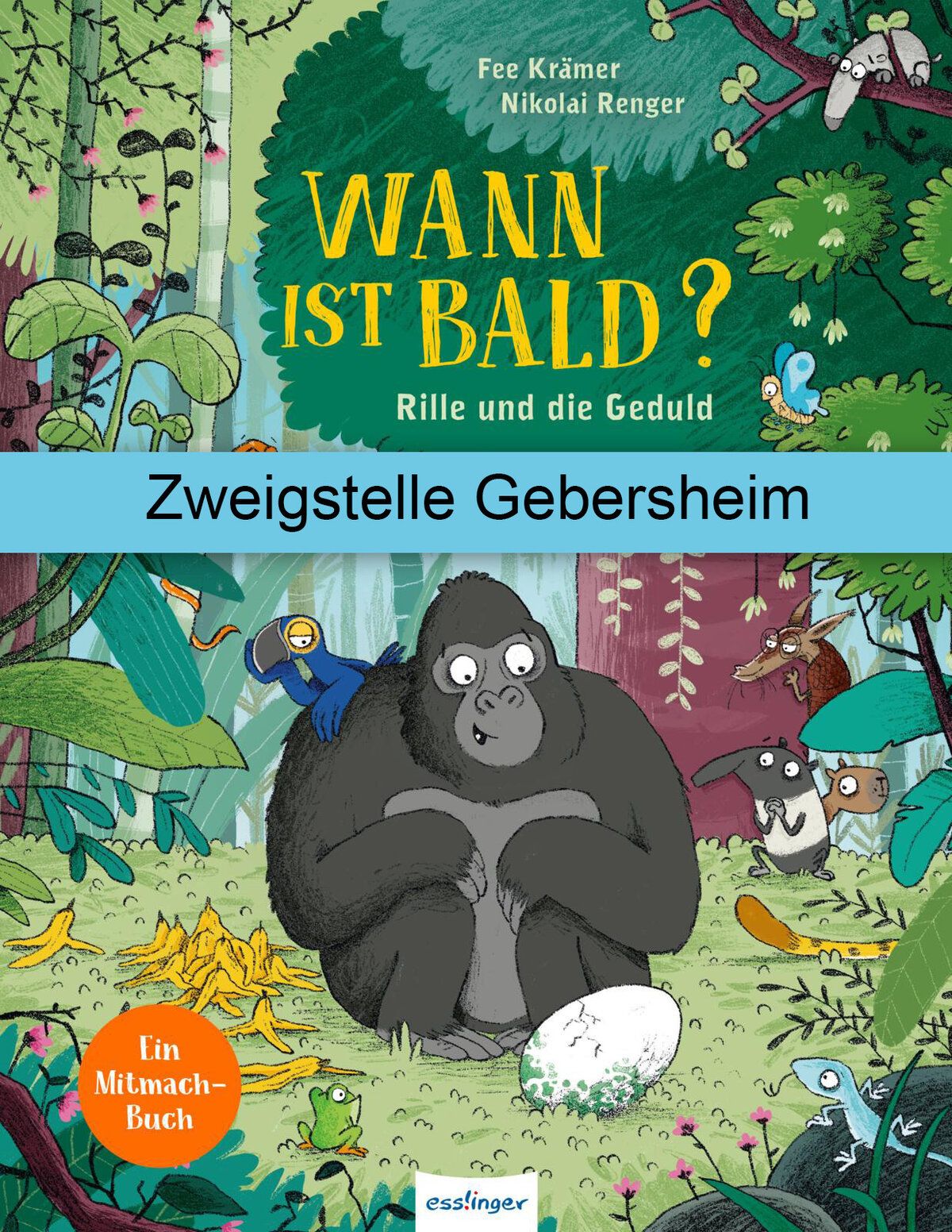 Der kleine Gorilla und seine Freunde im brasilianischen Urwald müssen sich in Geduld üben. Wie lange dauert es denn, bis jemand aus dem Ei schlüpft, das Rille gefunden hat? Wann ist bald? Schon gewusst, dass gemeinsames Warten schneller geht?!