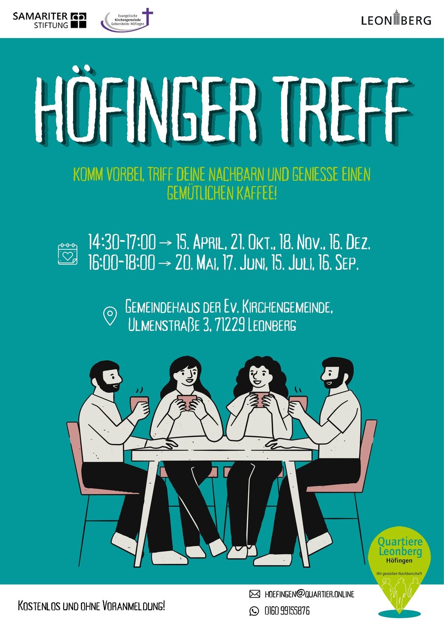 Du möchtest neue Leute aus Höfingen kennenlernen und bei einem gemütlichen Gespräch den Alltag hinter dir lassen? Dann komm zum „Höfinger Treff“ – ein kostenloses, offenes Angebot der Quartiersarbeit Höfingen.