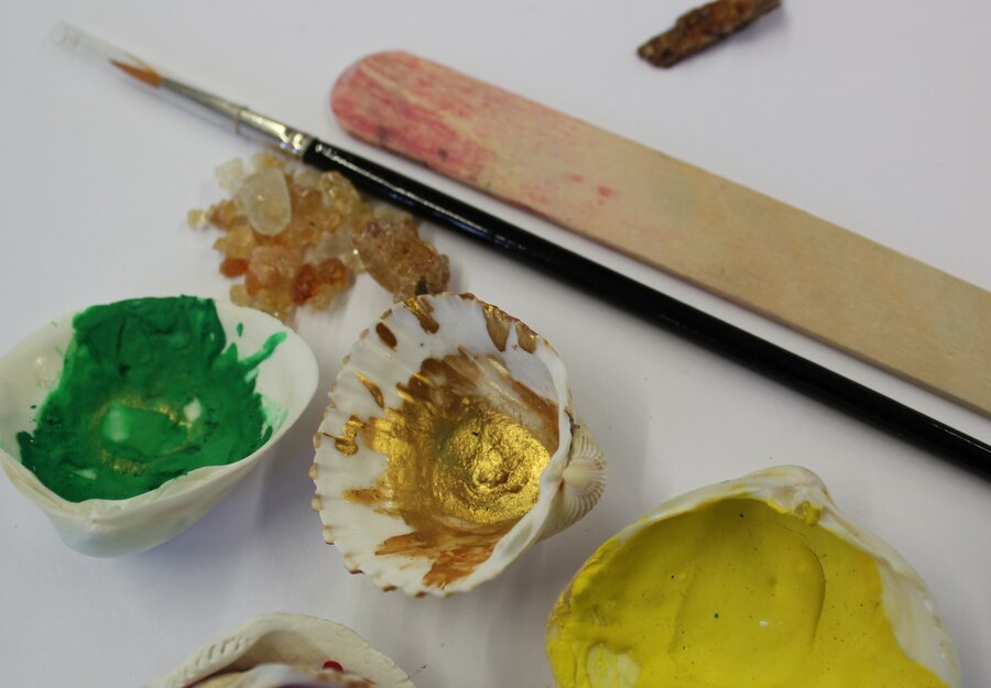 In der Offenen Werkstatt des Stadtmuseums wird damit gemalt. Wachskreiden und Wasserfarben passen super zusammen in einem Bild. Was passiert eigentlich, wenn brauner und grüner Saft miteinander gemischt werden? Und lassen sich aus Pflanzensaft auch feste Farben herstellen?