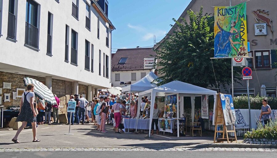 Am 10. August 2025 von 11 bis 18 Uhr findet der Höfinger Kunstmarkt zum 26. Mal in Leonberg-Höfingen statt.