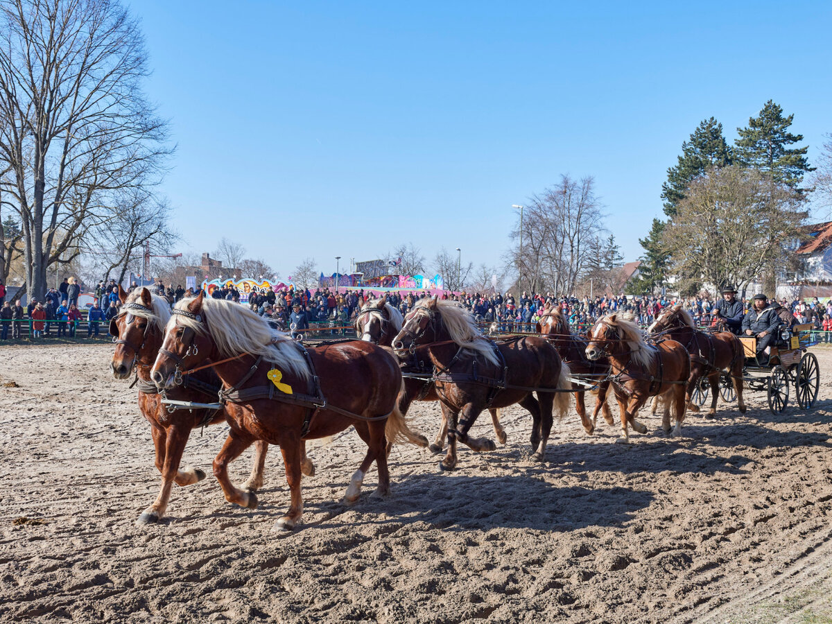 Ein weiterer Höhepunkt ist der Gespannwettbewerb, bei dem Ein-, Zwei-, Vier-, Sechs- und sogar Achtspänner präsentiert werden.