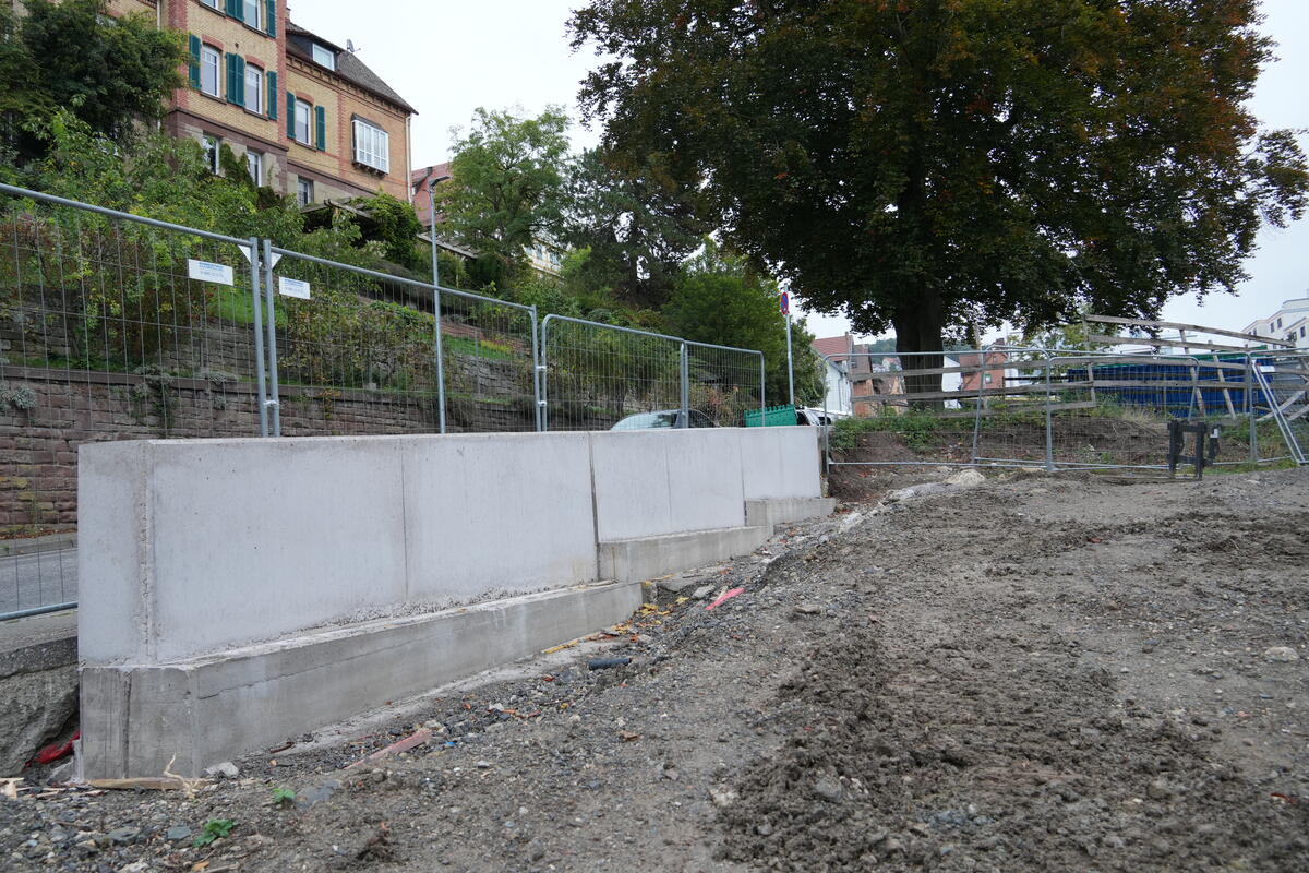 Zusätzlich ist die Bestandsmauer nun länger. Sie grenzt den Park zur Bahnhofstraße ab. Im westlichen Teil des Stadtgartens hat bereits der Landschaftsbau begonnen – erste Schächte sind gesetzt und die Vorbereitungen für die spätere Begrünung laufen.