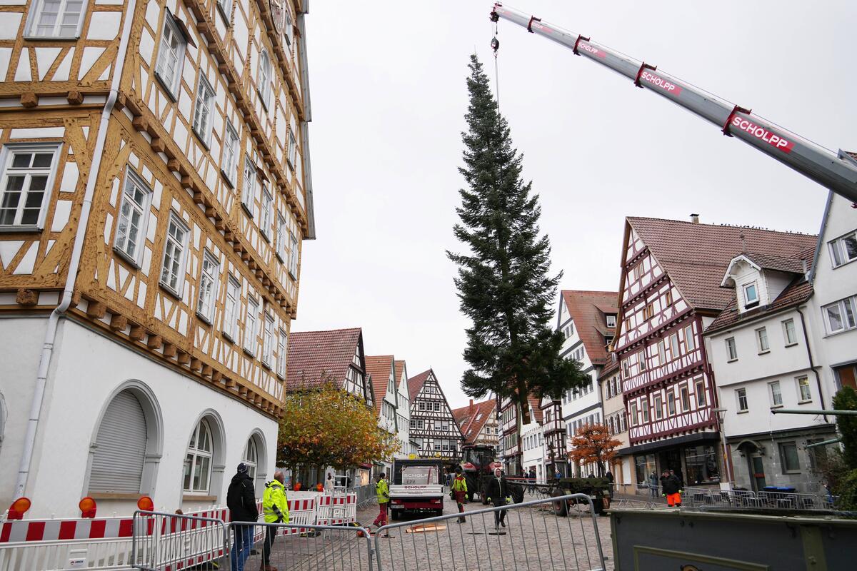 Weihnachtsbaum auf dem Leonberger Marktplatz aufgestellt